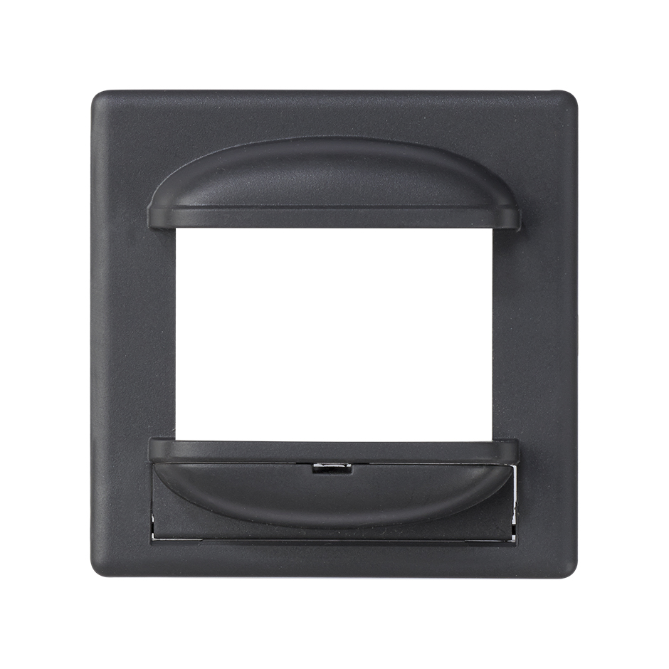 Es de color grafito y su forma es cuadrada de medidas 55 mm de alto x 55 mm de ancho. Está fabricada en material termoplástico. No incluye grabado en su superficie.