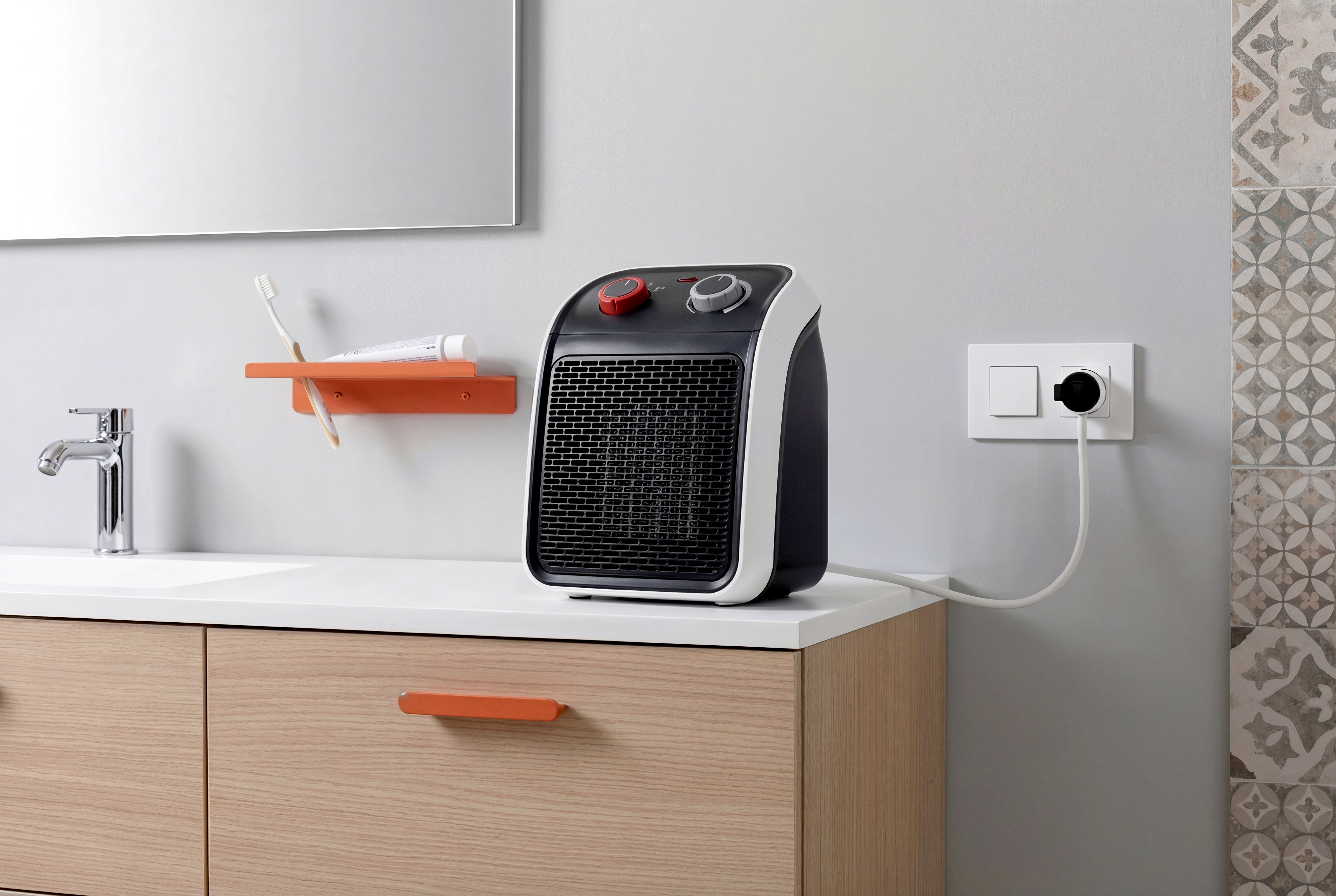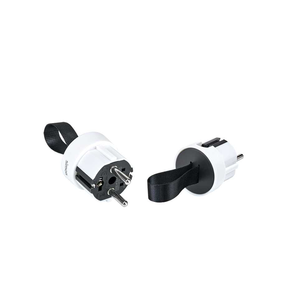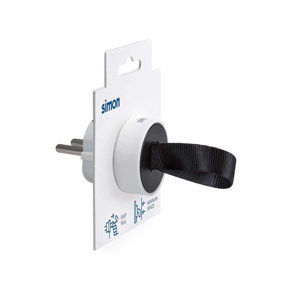 La nueva clavija con salida lateral extraplana de 16A con acabado bicolor en blanco y negro incorpora el sistema easy-pull para una fácil extracción mediante su cinta de nylon. Es ideal para espacios estrechos como detrás de muebles.