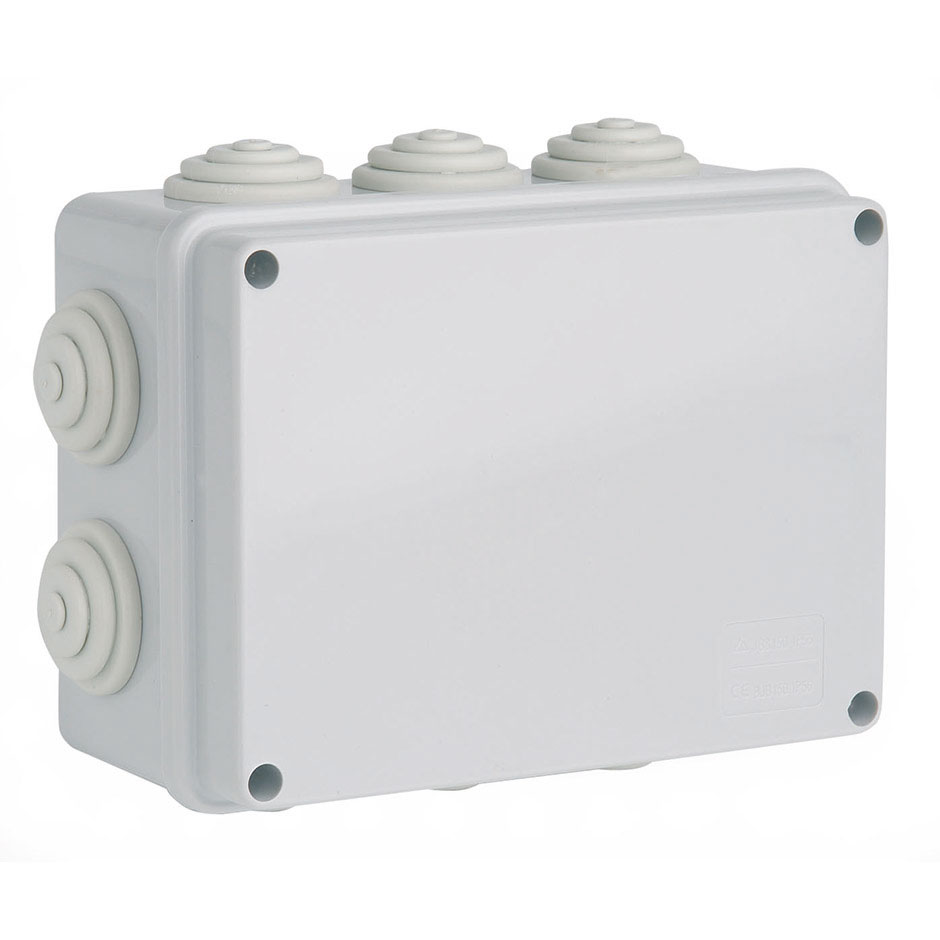 Caja estanca rectangular de superficies de la marca SIMON BRICO con cierre a tornillo y 10 conos ajustable. Tiene unas dimensiones de 190mm de ancho, 140mm de alto y 70mm de profundidad.
